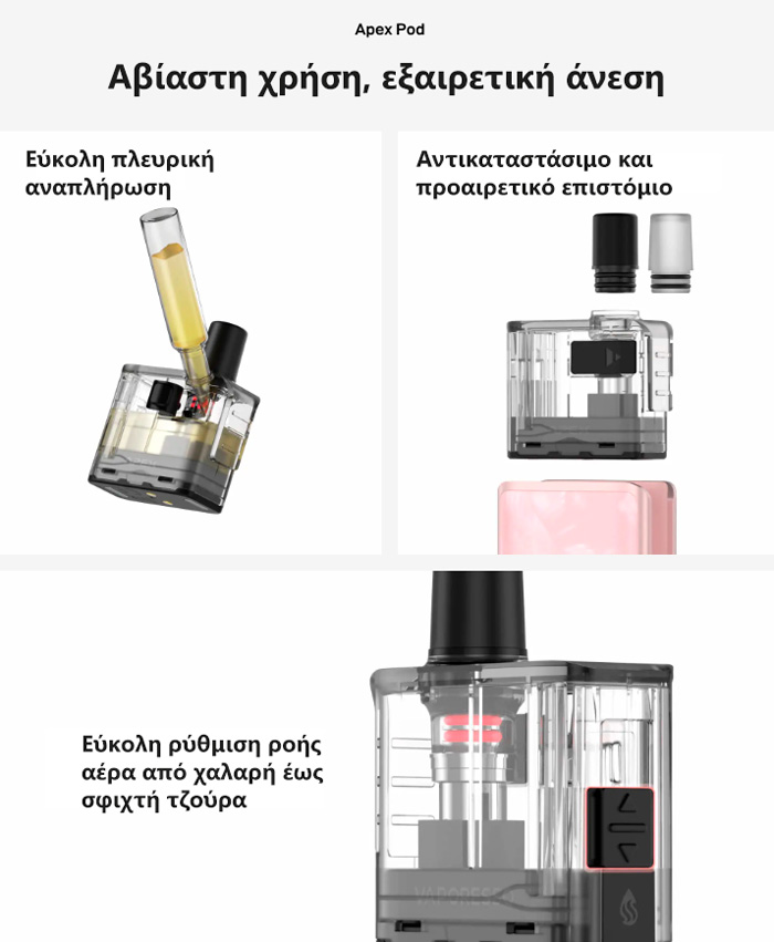 Το Vaporesso Kit Apex συνδυάζει απόδοση, αυτονομία και ευχρηστία, κάνοντάς το την απόλυτη επιλογή για κάθε ατμιστή!