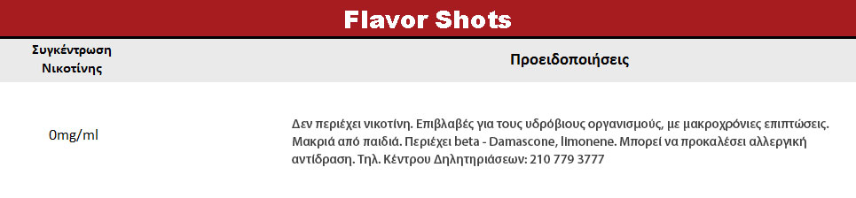 Περιέχει 20ml άρωμα. Επιβλαβές για τους υδρόβιους οργανισμούς. Μακριά από παιδιά. Διάθεση του περιεχομένου/περιέκτη σύμφωνα με τους τοπικούς/εθνικούς/διεθνείς κανονισμούς. Περιέχει beta – Damascone. Μπορεί να προκαλέσει αλλεργική αντίδραση.