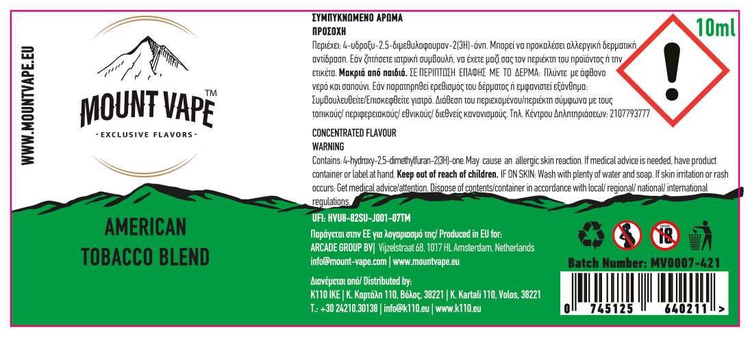 MOUNT VAPE AMERICAN TOBACCO BLEND 10ML/30ML FLAVORSHOT