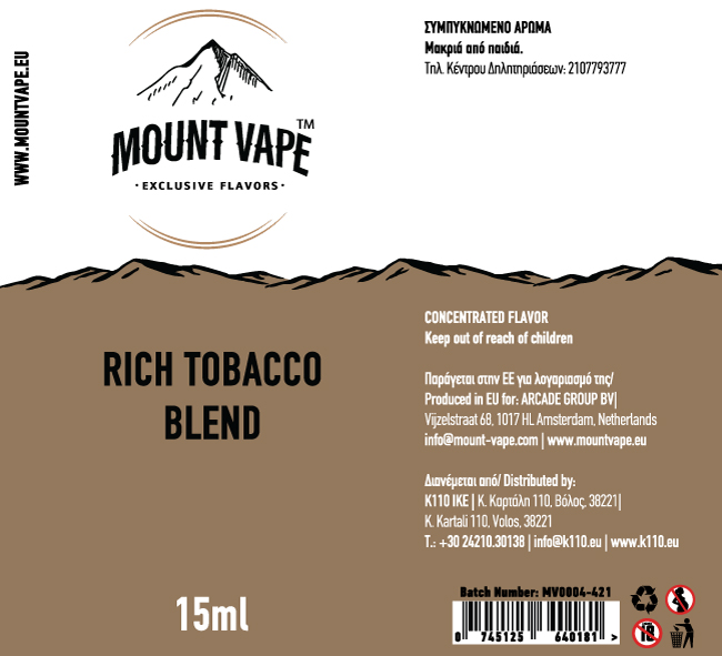 MOUNT VAPE RICH TOBACCO BLEND 15ML/60ML FLAVORSHOT