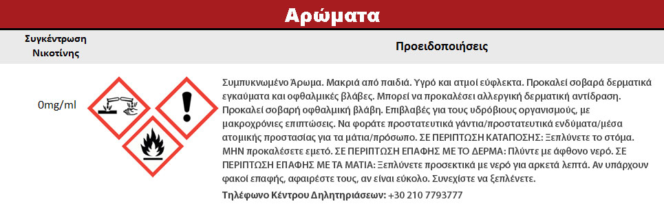 Συστατικά: Συμπυκνωμένο μείγμα αρωμάτων, διαλυμένο σε προπυλενική γλυκόλη (FEMA 2940). Δεν περιέχει ζάχαρη και γλουτένη.