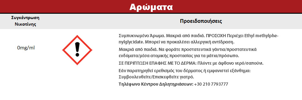 Συστατικά: Υπερσυμπυκνωμένο μίγμα αρωματικών ουσιών.